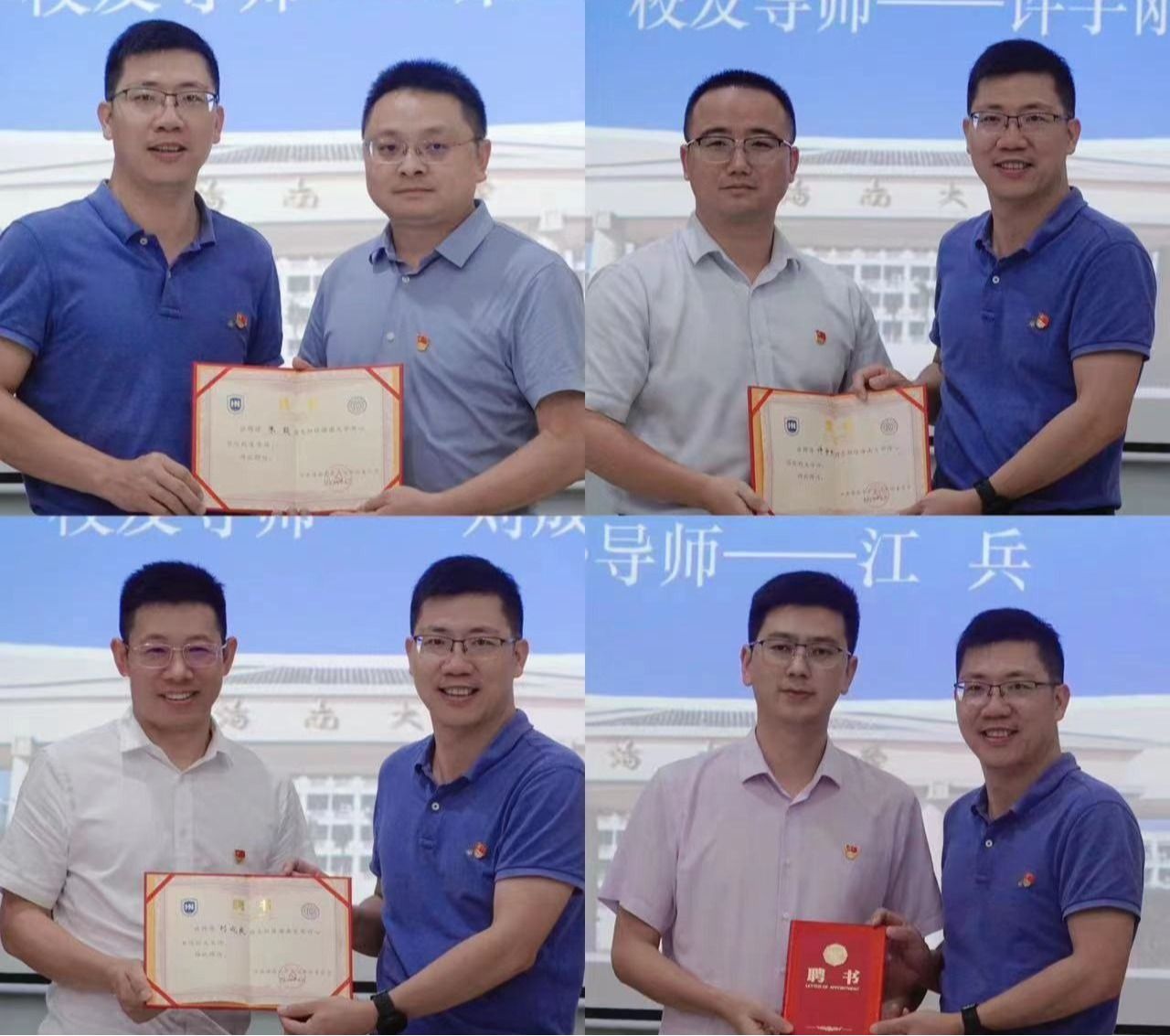 姚天增为江兵、刘成良、朱毅、徐宇刚颁发丹心书院校外导师聘书,期待双方深入展开交流,为人才培养带来更多路径与方式。