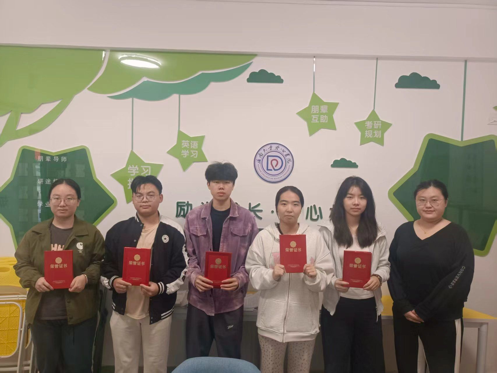 2025年11月5日,丹心书院与儋州校区管委会共同为张绪埔、冯瑞、王炫霖、郝露露、张原5位同学颁发“十月自习之星”荣誉证书及奖品。