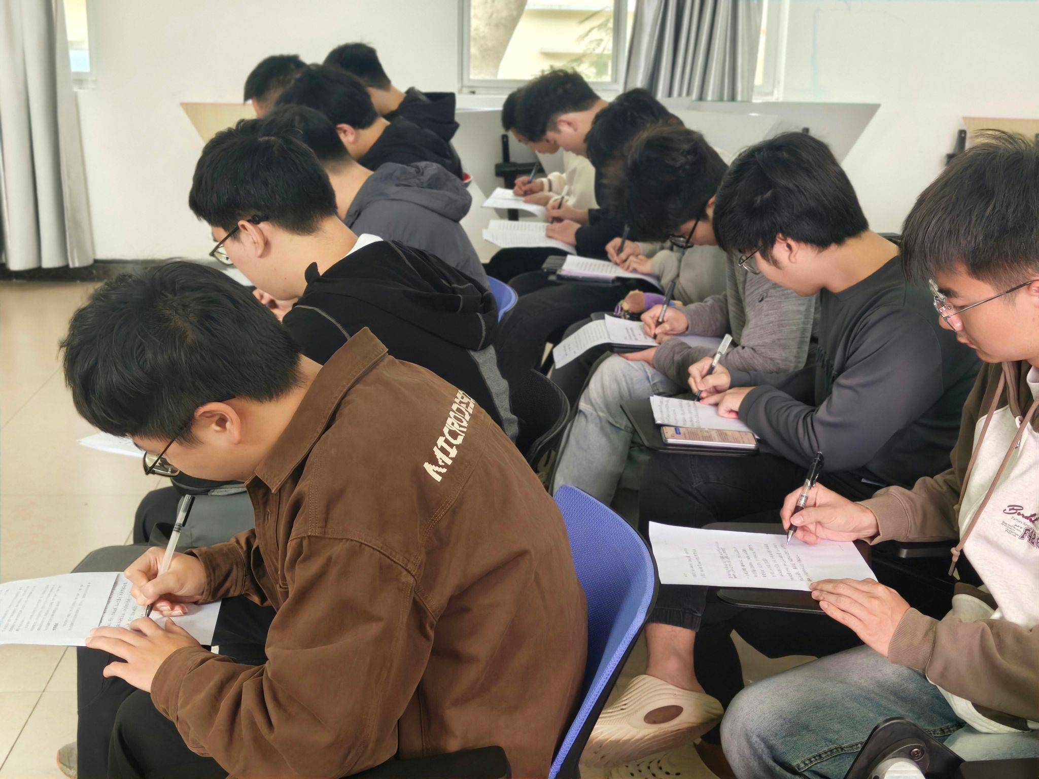 活动伊始,工作室负责人张子宇老师为同学们发放精选申论真题素材,带领大家共同审题、明确核心考点,正式拉开实战演练序幕。同学们严格恪守考试时间,专注研读材料、梳理逻辑脉络、规范书写作答,在沉浸式实战中锤炼应试技巧、强化时间管理能力,充分展现出积极备考、潜心钻研的优良学风。