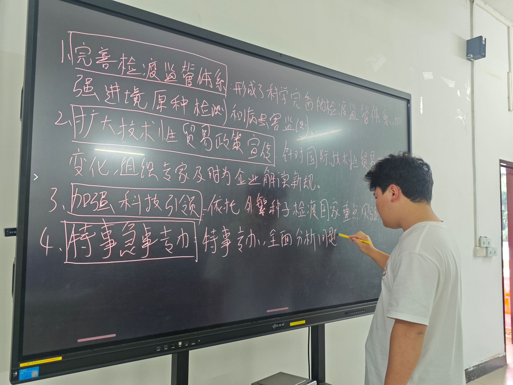 随后,工作室学生负责人王帅从答题结构、论点深度、语言逻辑、格式规范等维度,对每份答卷进行细致批改,指出作答中的问题并给出针对性改进建议。在讲解环节,王帅结合批改反馈,聚焦题目核心考点,拆解解题思路,分享高分策略,帮助同学们厘清答题误区,掌握申论写作技巧。