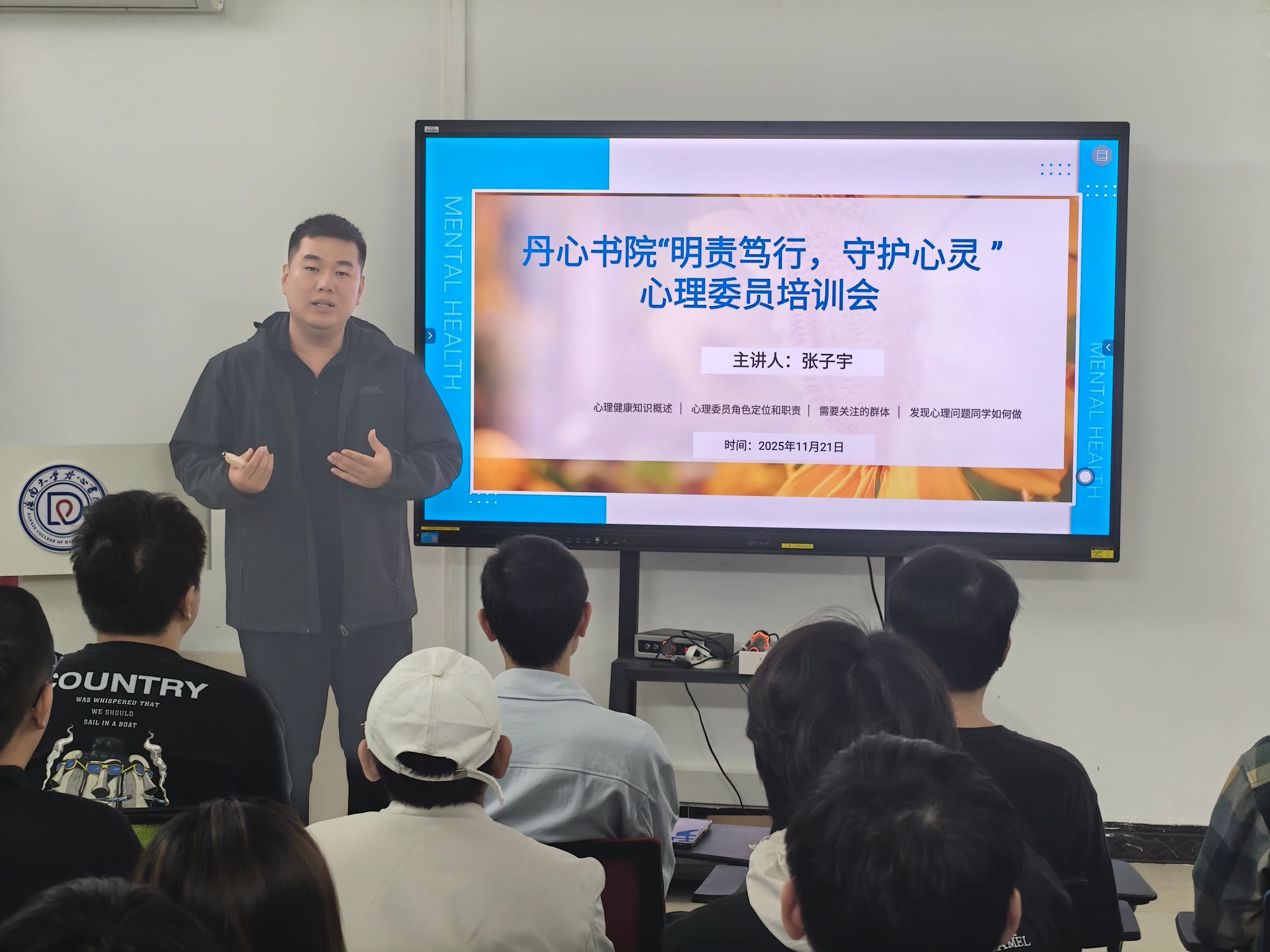 11月21日18:00,海南大学丹心书院在知行楼201教室如期开展“明责笃行,守护心灵”心理委员培训会。本次培训由丹心书院辅导员、负责心理工作的张子宇老师担任主讲人,书院69名班级心理委员全程参与,认真聆听学习。