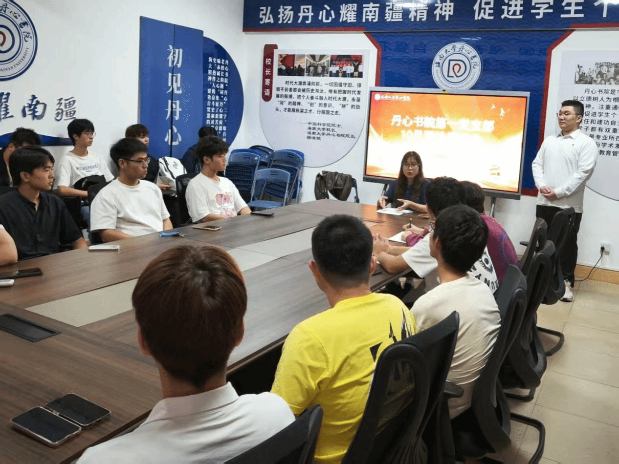 2025年10月30日晚上21:30,海南大学丹心书院第一党支部在A9栋101党员之家召开十月理论学习会,与会同志共同学习了中国共产党第二十届中央委员会第四次全体会议精神。