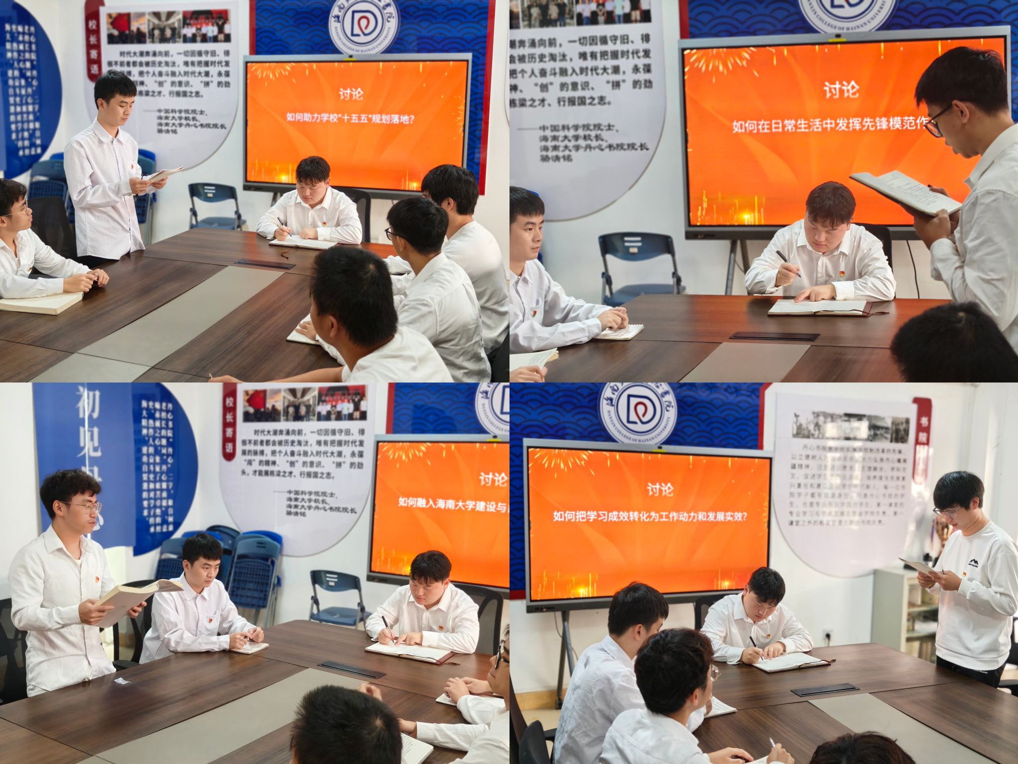 随后,党员同志们结合自身学习体会逐一发言。邱海林表示,将立足海南高校党员的特殊使命,主动融入“聚全省之力建好海南大学”的大局与海南自贸港发展进程,以实际行动助力学校“十五五”规划落地见效;陈逢荘坦诚分享了学习中的困惑与成长收获,进一步深化了对党员职责使命、教育工作核心要义的认知;闵毅表示,将立足科研岗位发挥先锋模范作用,以扎实的学术研究为书院发展、自贸港建设贡献力量。