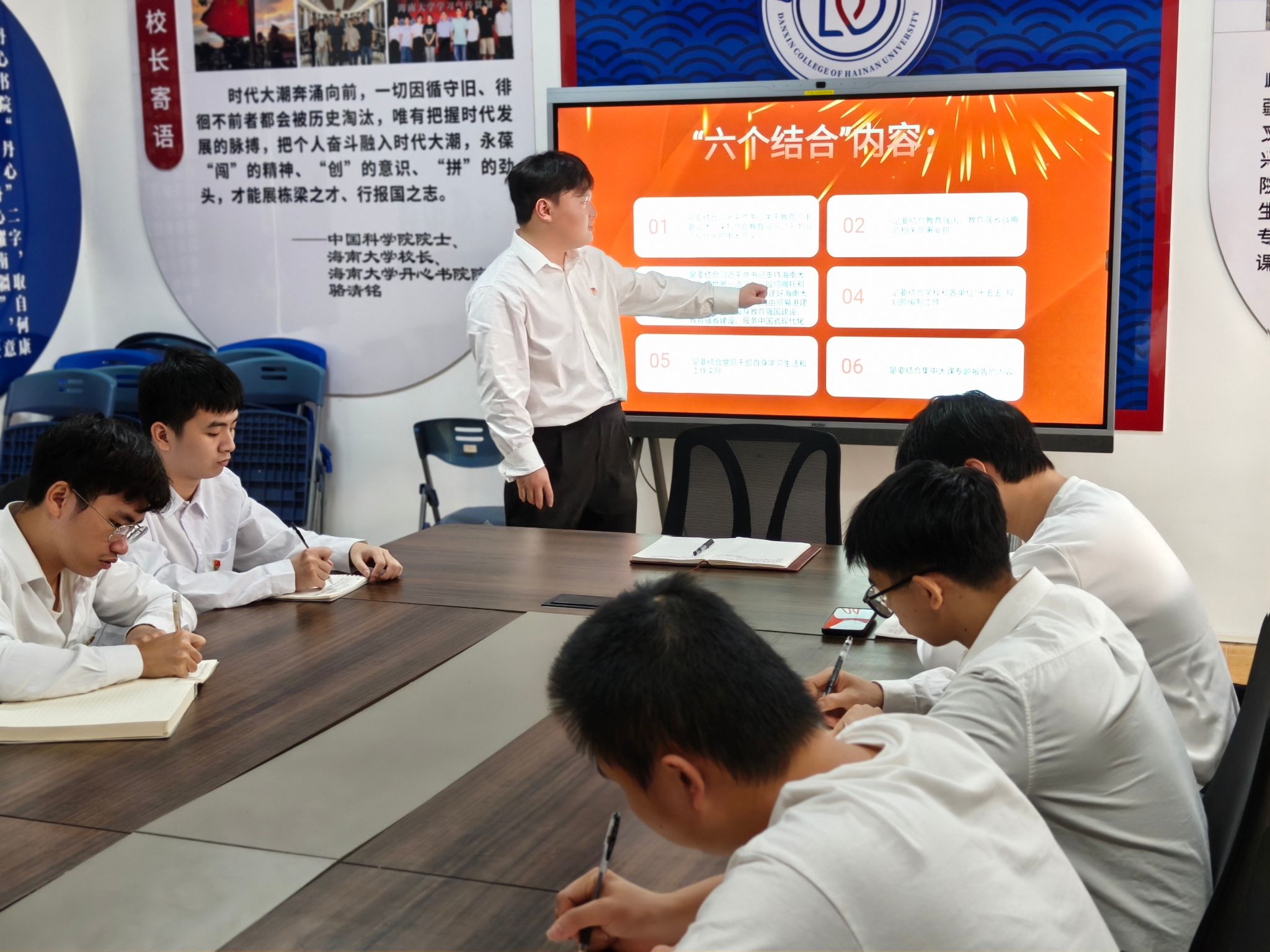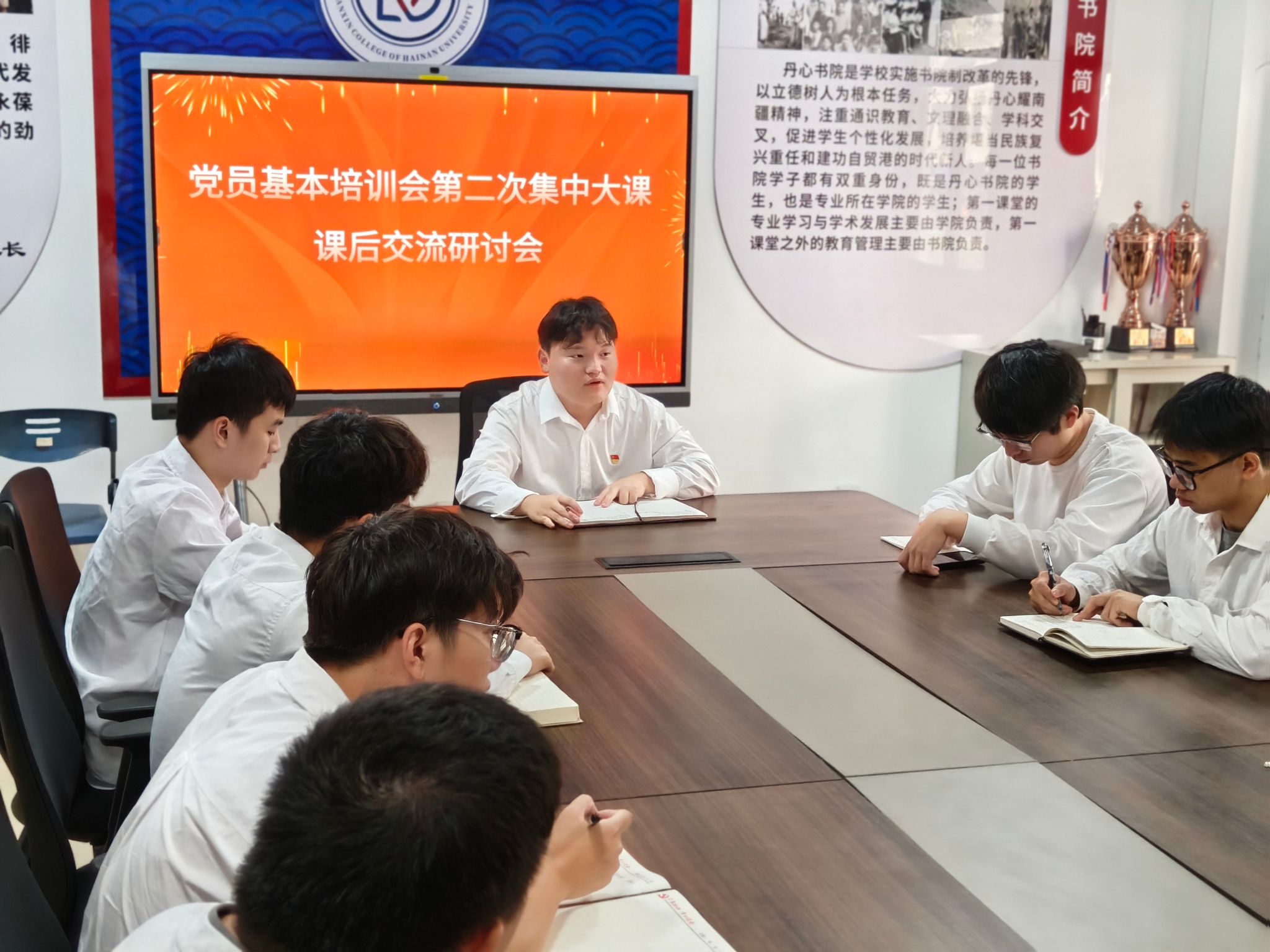 2025年11月1日晚,海南大学丹心书院第六党支部在丹心书院A9-101举行了党员基本培训会第二次集中大课课后交流研讨会。全体党员围绕培训核心内容,紧扣“六个结合”要求,分享学习感悟、交流实践思路,现场研讨氛围热烈浓厚。