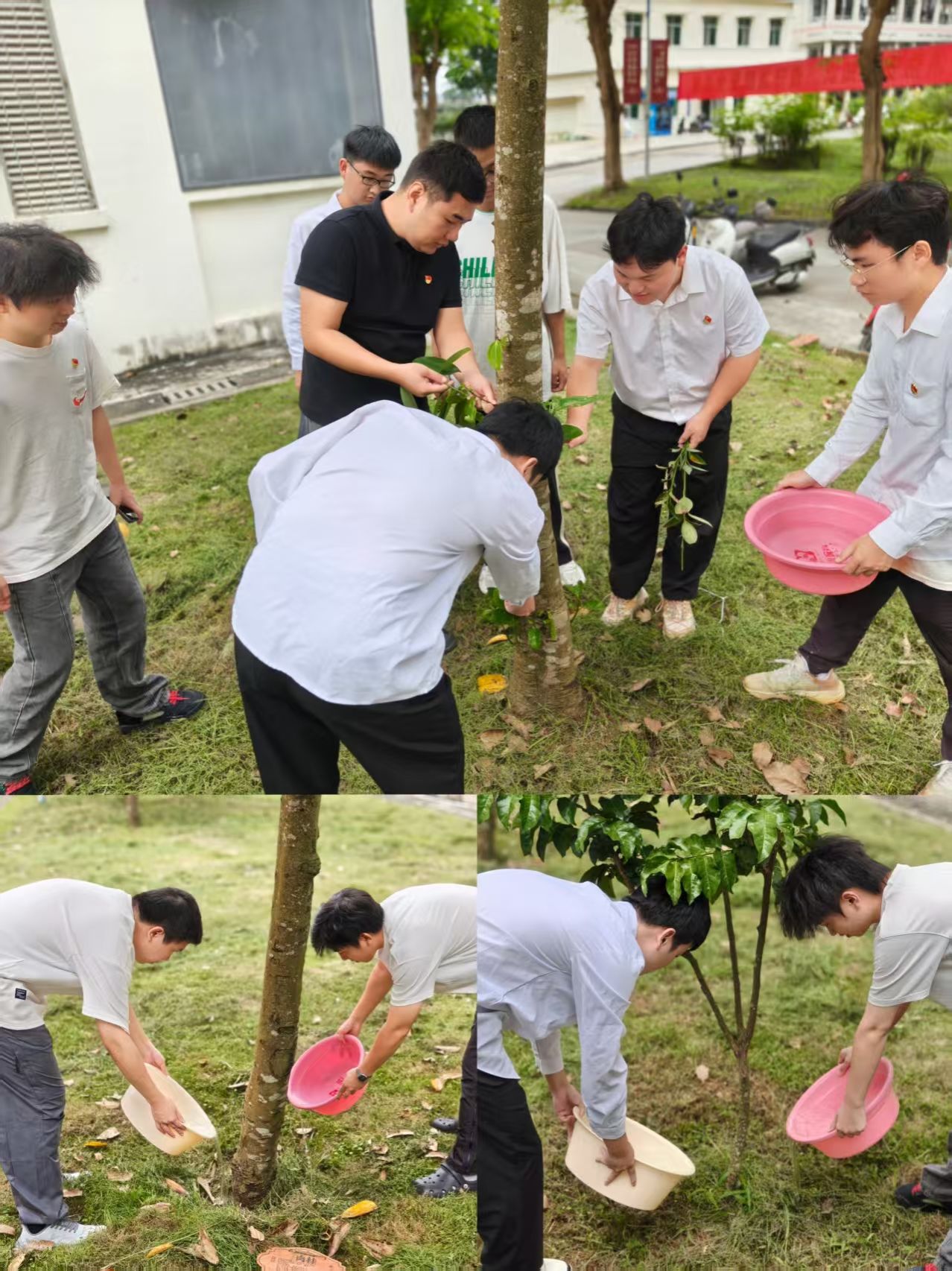 实践环节大家分工协作,在王帅的指导下大家一起为黄皮树和桂皮树松土、除草、浇水。劳作中,全体党员交流心得,纷纷表示:“黄皮树和桂皮树藏着大学问,老师的讲解让我们懂了‘一草一木皆学问’。”