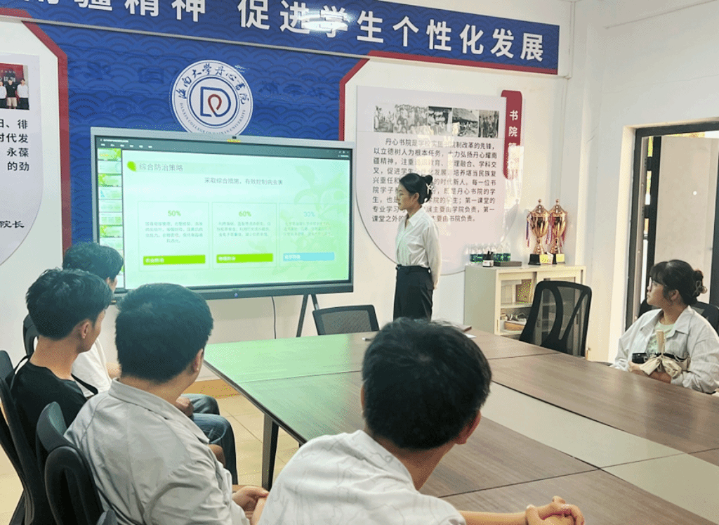 2025年11月9日下午,海南大学丹心书院第十党支部在12栋宿舍楼北侧,开展“理论+实操”式柚子树以及花梨木养护为主题实践的活动,张欣雨同学担任主讲,共计30名同学到场。