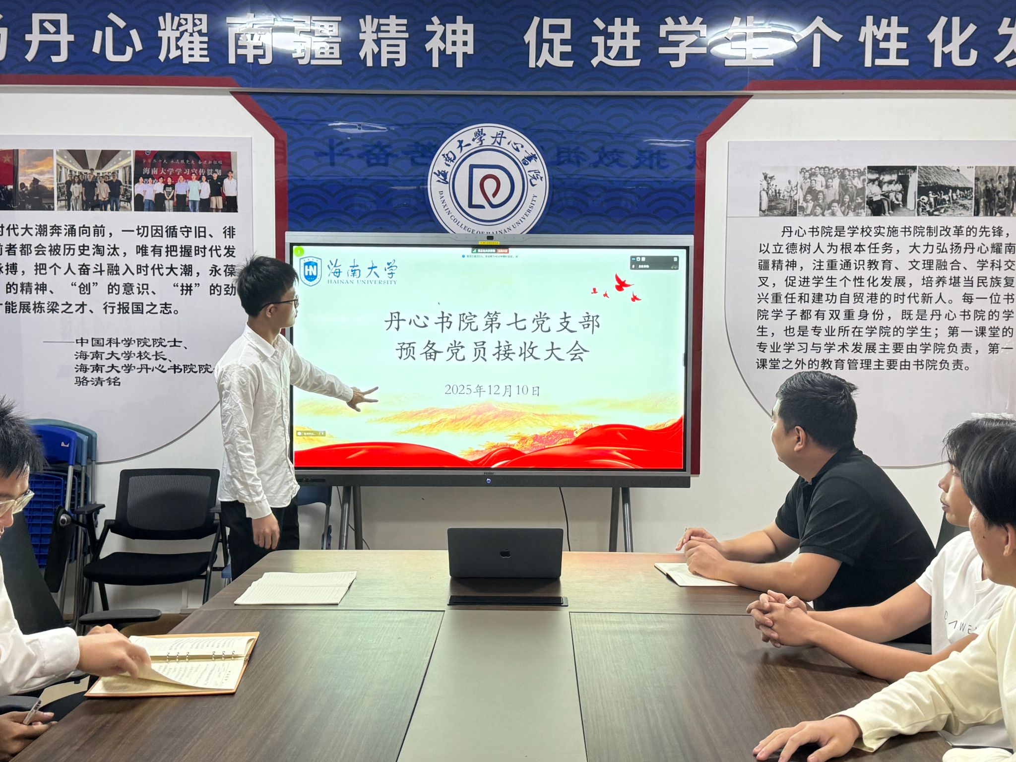 2025年12月10日,海南大学丹心书院第七党支部在A9-101党员之家召开预备党员接收大会。