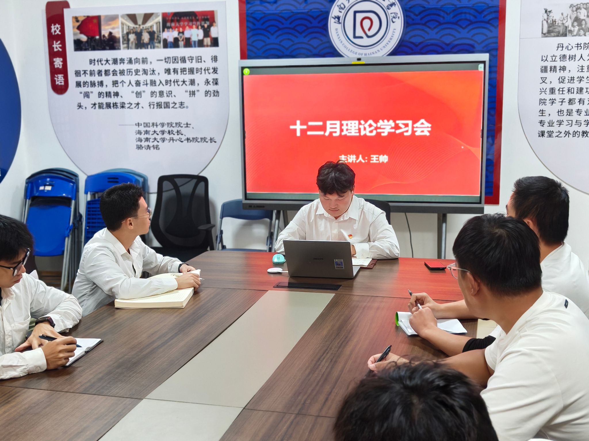 2025年12月14日晚上,海南大学丹心书院第六党支部在丹心书院A9-101召开了十二月理论学习会,全体党员参与学习,凝聚起推动学校高质量发展的思想共识与行动合力。