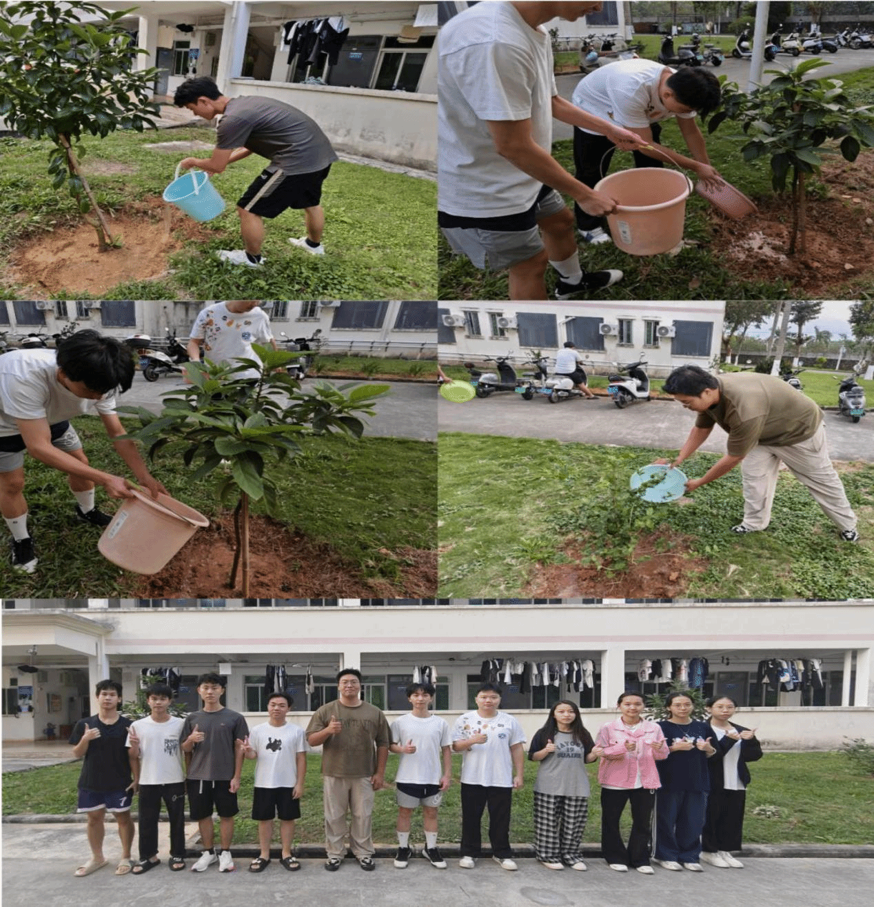 2025年12月20日下午,海南大学丹心书院第三党支部在A9、A7栋宿舍楼前开展十二月耕读实践活动。活动由第三党支部书记赵治钧及9名支部成员共同参与。