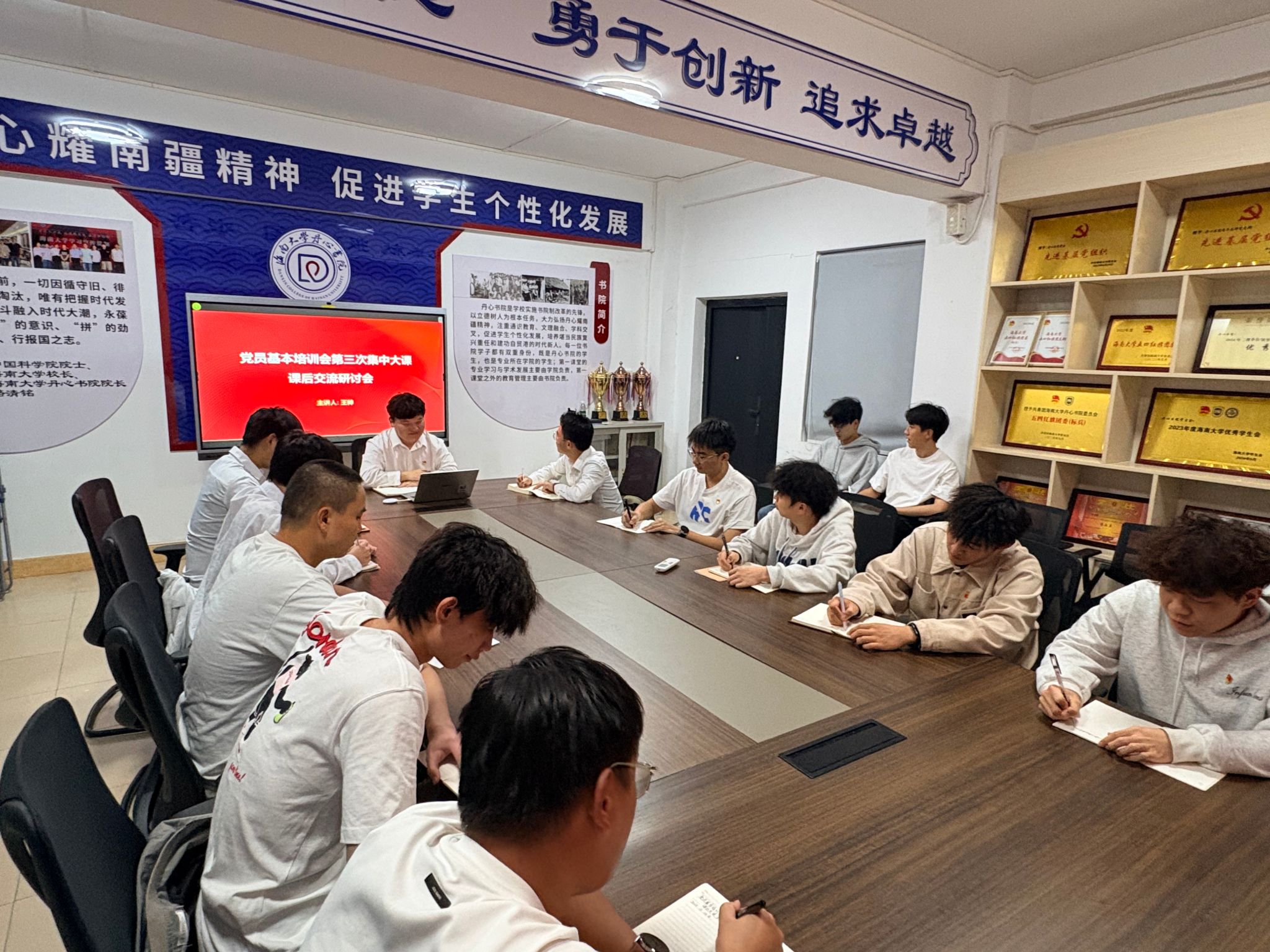 2025年12月25日晚,海南大学丹心书院第六党支部在党员之家举行党员基本培训会第三次集中大课课后交流研讨会。支部全体党员参会,围绕“六个结合”展开深度研讨,推动理论学习与实践履职深度融合。
