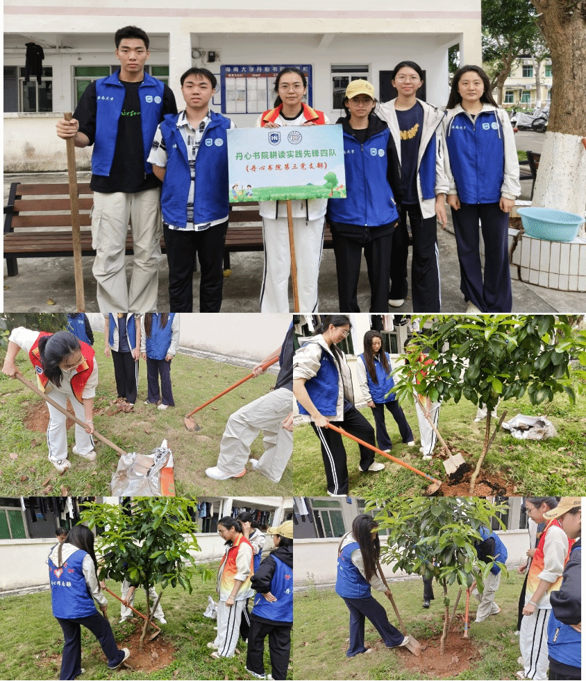 2026年3月12日,海南大学丹心书院第三党支部在A9、A7栋前耕读区域开展植树节主题耕读实践活动,支部各成员积极参与。