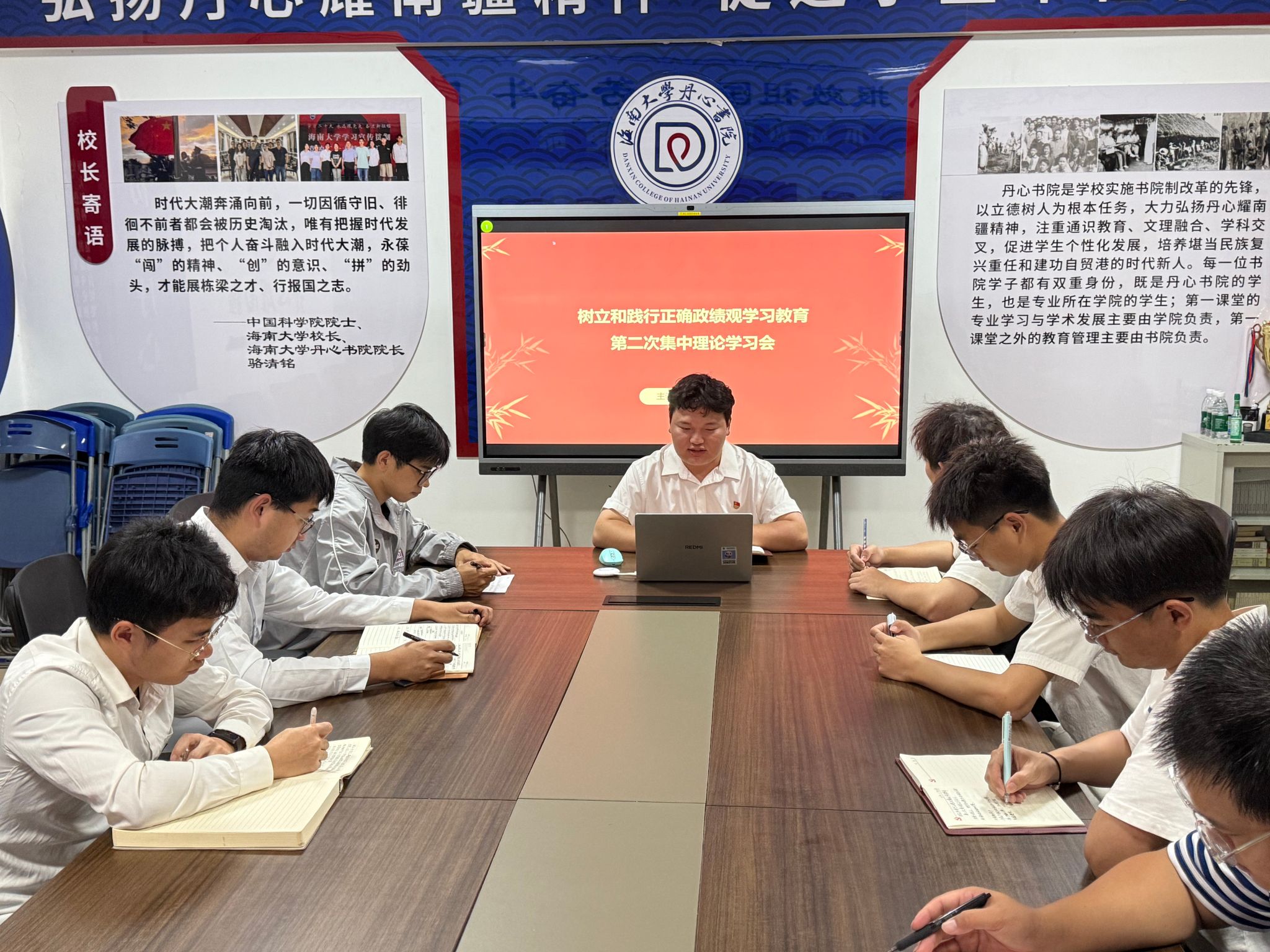 2026年3月24日晚上,海南大学丹心书院第六党支部在丹心书院A9-101召开了树立和践行正确政绩观学习教育第二次集中理论学习会,全体党员参加学习。