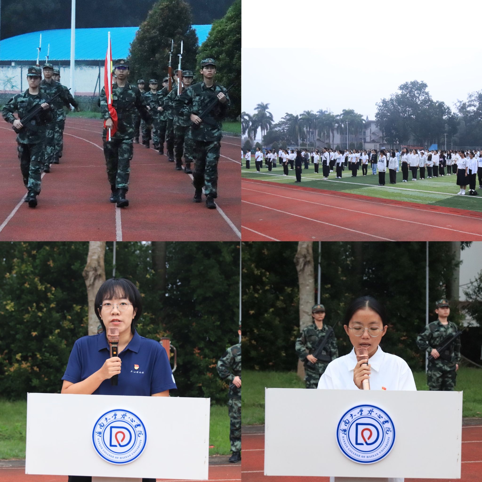 11 月 10 日 6 :40,丹心书院在儋州校区田径运动场举行主题升旗仪式,书院党委副书记贺加贝、辅导员于婧、段玉,及 200余名学生代表参加。