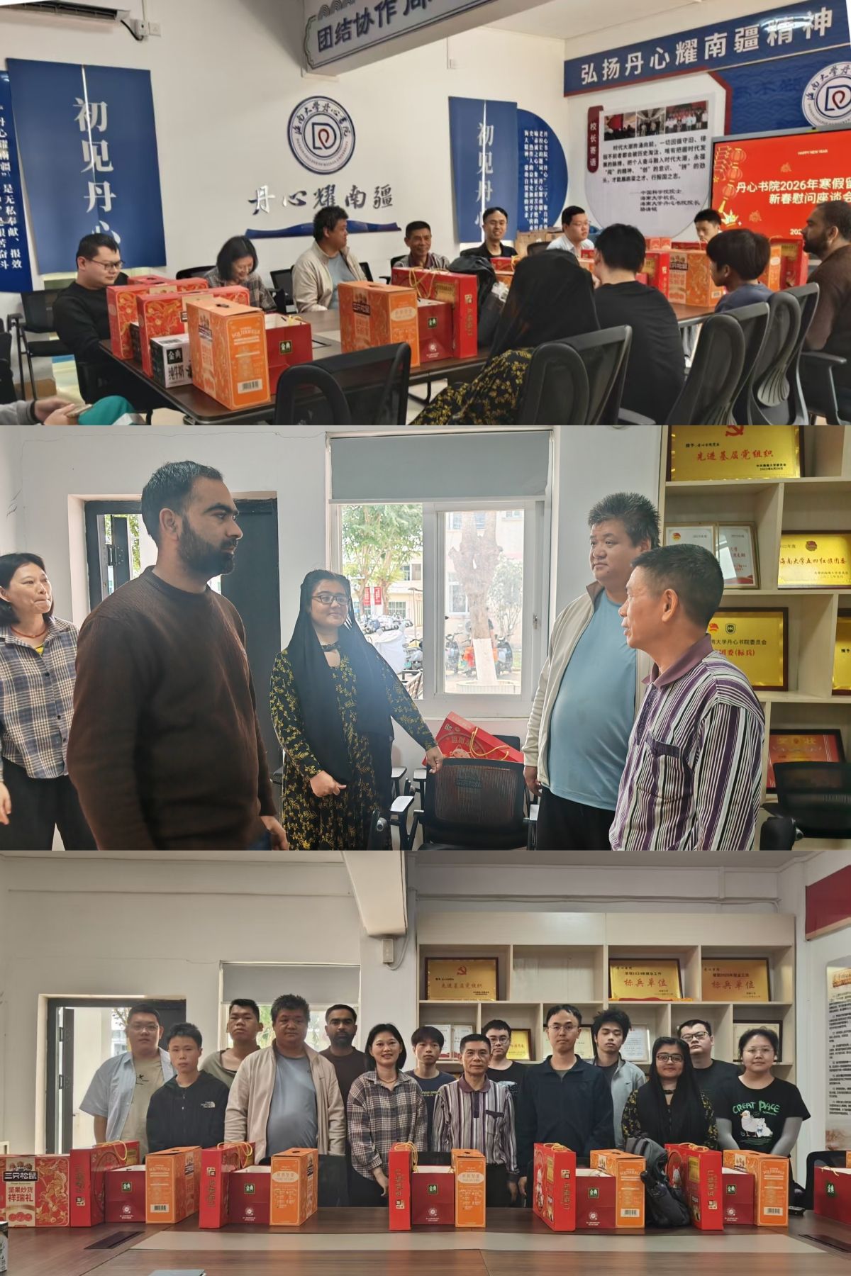 2026年2月10日上午,北方小年来临之际,丹心书院在A9栋101开展2026年寒假留校学生新春慰问座谈会,书院党委书记王珍、值班老师与同学们共聚一堂,师生互相致以新春问候。老师们了解同学们留校期间的学习计划与生活状况,叮嘱大家提高安全防范意识,合理安排作息及科研任务,并为大家送上学校和书院的新春慰问。