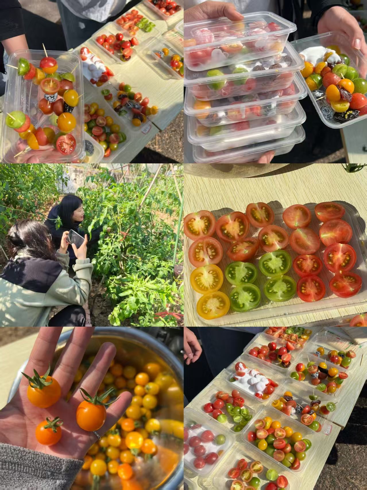 1月8日上午,丹心书院自强班在立华园采摘自己种植的圣女果,现洗现切现加工,与来往师生共享丰收喜悦。