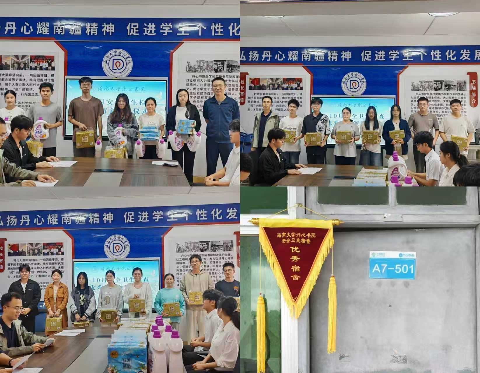 2025年11月6日,丹心书院向在9-10月宿舍安全卫生检查中获得优秀的20间宿舍颁奖,希望同学们继续发挥榜样作用,带动更多的同学共同营造安全、文明、温馨、向上的社区氛围。
